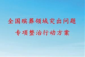 为认真贯彻落实党中央、国务院决策部署,有效解决殡葬领域群众反映强烈的突出问题,进一步规范和加强殡葬管理,着力维护人民群众切身利益,经国务院领导同志同意,民政部、发展改革委、公安部、司法部、自然资源部、住房城乡建设部、国家卫生健康委员会、国家市场监管总局、国家宗教事务局决定从2018年6月下旬开始至9月底,在全国范围内联合开展殡葬领域突出问题专项整治行动。